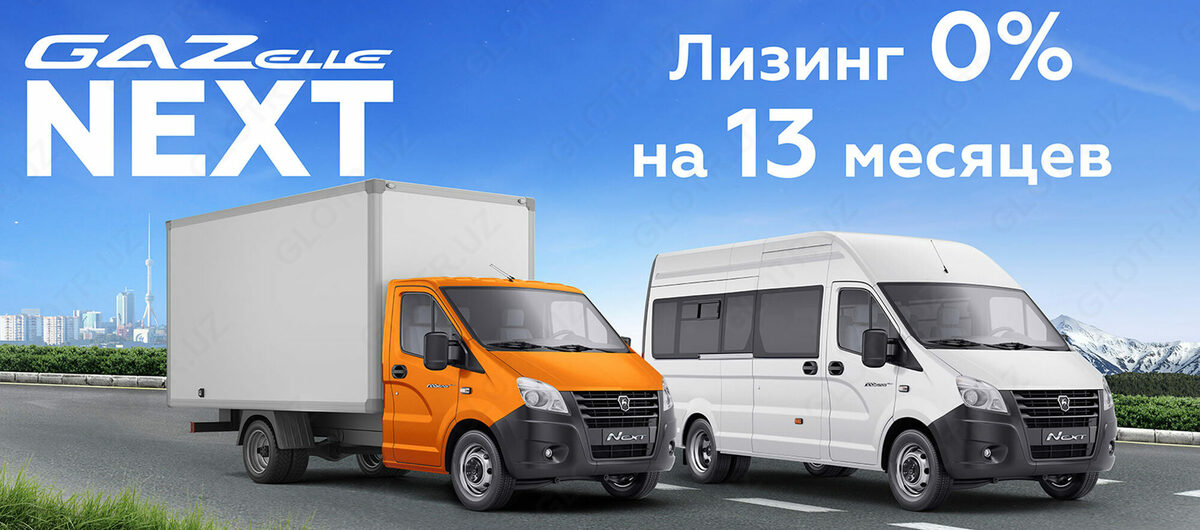 Действует акция по льготной реализации автомобилей GAZelle Next в лизинг 0%. Вы оплачиваете 50% стоимости автомобиля в автосалоне и расходы по оформлению, а остальные 50% оплачиваете в течении 13 месяцев равными долями. Подать заявку на приобретение можно по ссылке (http://autogaz.uz/offer/lizing-0/). Торопитесь! Количество автомобилей ограничено.